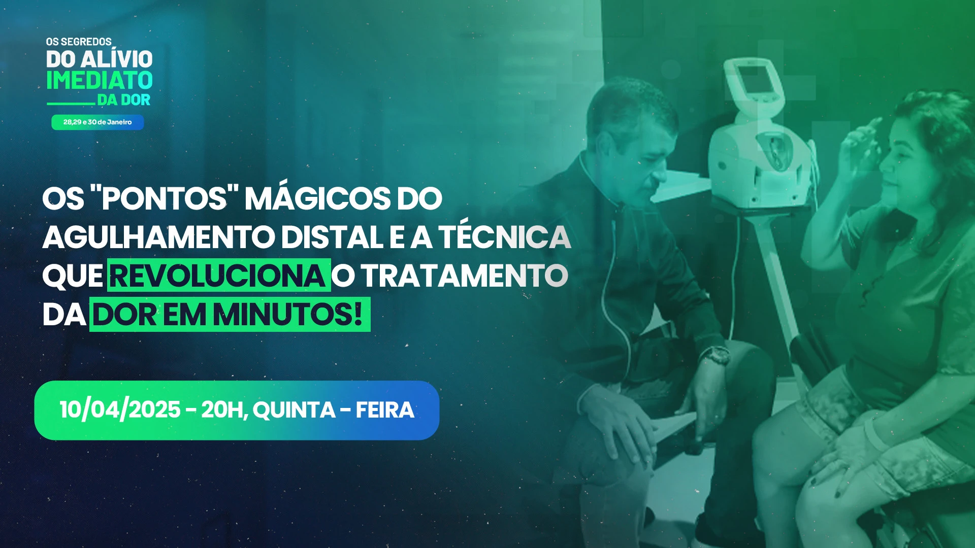 Aprenda em 3 aulas os “pontos mágicos” do Agulhamento Distal para tratar sem tocar no local da dor, e dar muito mais resultados nos seus atendimentos – sem agulhas.